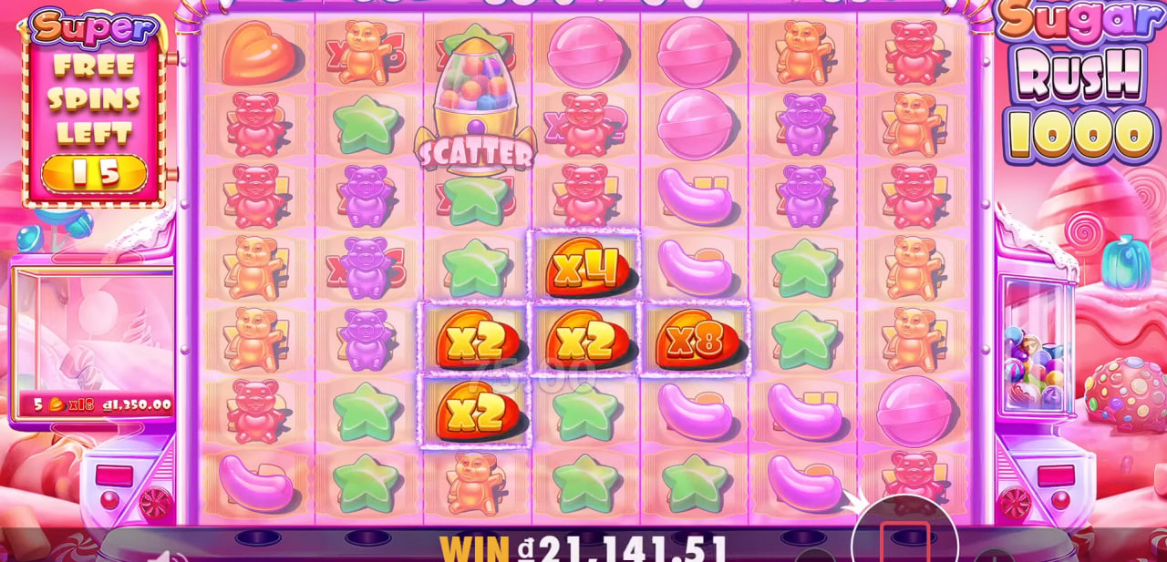 A principal diferença do 1000 Sugar Rush demo é que ele não oferece prêmios reais. Os ganhos são virtuais e servem apenas como referência. No mais, os elementos do jogo — como volatilidade, rodadas grátis e bônus — são idênticos. O slot grátis Sugar Rush 1000 é uma cópia exata da versão paga, ideal para se preparar sem gastar.